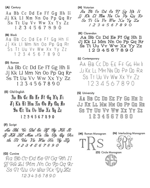 PLEASE INDICATE THE FONT STYLE AND TEXT IN THE MESSAGE BOX AT CHECK OUT.